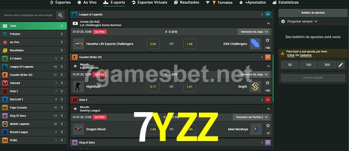 O 7YZZ oferece uma grande seleção de opções de apostas em e-sports com probabilidades competitivas
